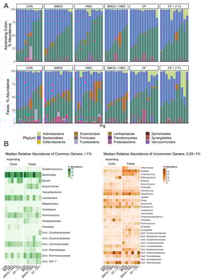 - Wang, M.; Monaco, M.H.; Hauser, J.; Yan, J.; Dilger, R.N.; Donovan, S.M. Bovine Milk Oligosaccharides and Human Milk Oligosaccharides Modulate the Gut Microbiota Composition and Volatile Fatty Acid Concentrations in a Neonatal Model. Microorganisms 2021, 2, 331–351. [Google Scholar]
