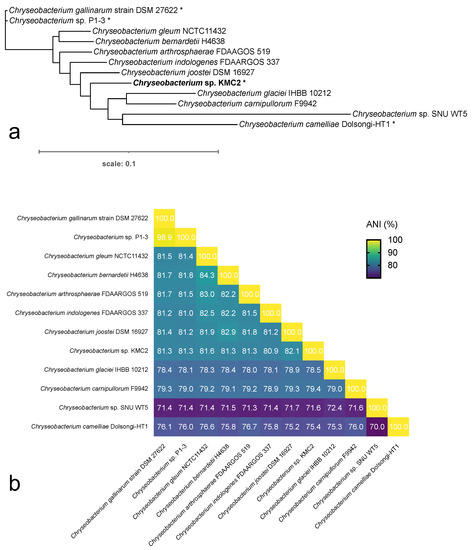 Chryseobacterium sp. KMC2 originated from a river-bank soil sample, and displayed a potent degradation ability toward milled pig bristle and hooves [27,28]. The genome of Chryseobacterium sp. KMC2 was sequenced and compared to three reference genomes of Chryseobacterium species (Table 1).