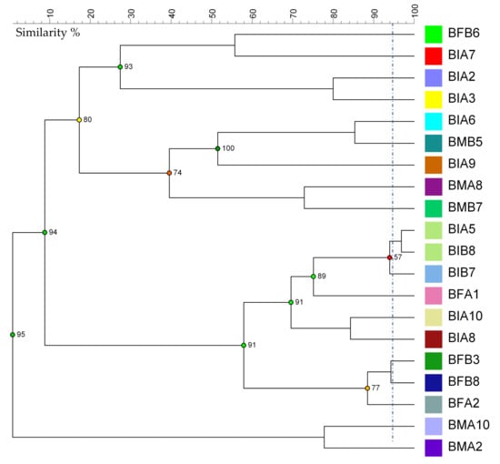 - Esteve-Zarzoso, B.; Belloch, C.; Uruburu, F.; Querol, A. Identification of Yeasts by RFLP Analysis of the 5.8S rRNA Gene and the Two Ribosomal Internal Transcribed Spacers. Int. J. Syst. Bacteriol. 1999, 49, 329–337. [Google Scholar] [CrossRef]