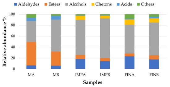 - De Luca, L.; Aiello, A.; Pizzolongo, F.; Blaiotta, G.; Aponte, M.; Romano, R. Volatile Organic Compounds in Breads Prepared with Different Sourdoughs. Appl. Sci. 2021, 11, 1330. [Google Scholar] [CrossRef]