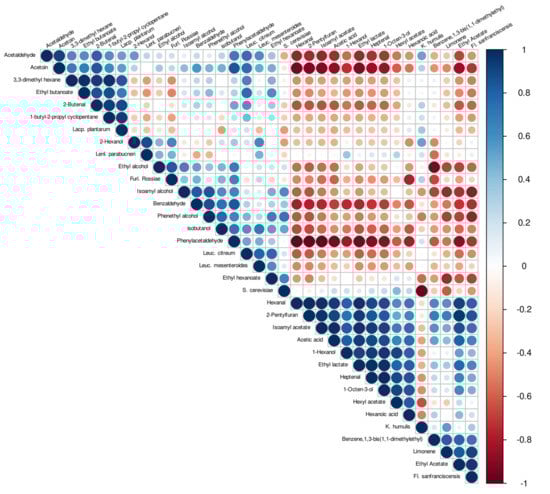 3.5. Correlation of VOCs and Species Detected in Sourdough and Dough Samples