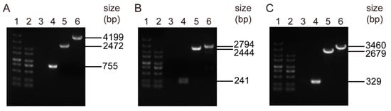 2.9. Construction of Markerless Gene Deletion Mutants Using the SCIY Cassette