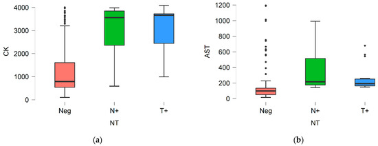 - Mokuno, K.; Riku, S.; Sugimura, K.; Takahashi, A.; Kato, K.; Osugi, S. Serum creatine kinase isoenzymes in Duchenne muscular dystrophy determined by sensitive enzyme immunoassay methods. Muscle Nerve 1987, 10, 459–463. [Google Scholar] [CrossRef] [PubMed]