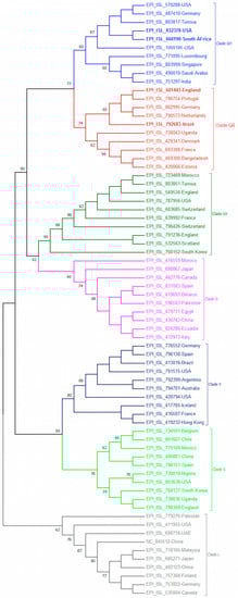 - Zhukova, A.; Blassel, L.; Lemoine, F.; Morel, M.; Voznica, J.; Gascuel, O. Origin, evolution and global spread of SARS-CoV-Comptes Rendus. Biologies 2020. [Google Scholar] [CrossRef]