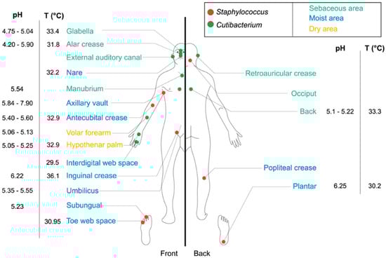 Topographical distribution of Staphylococcus and Cutibacterium on the human skin [22].