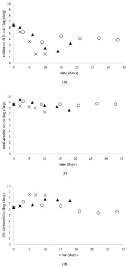 34]. In our study the detected number of yeasts and molds (5.7 log cfu/g) was higher when compared to the aforementioned studies. Due to the lack of a pasteurization process, all bacteria present in raw milk are transferred to the final product. On the contrary to ripened raw milk cheeses, unripened cheeses (e.g., tvarogs) in general have a limited shelf-life, as the spoilage of these products may occur faster compared to products made from pasteurized milk.