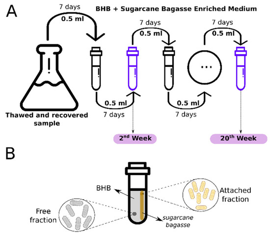 - Constancio, M.T.L.; Sacco, L.P.; Campanharo, J.C.; Castellane, T.C.L.; de Oliveira Souza, A.C.; Weiss, B.; de Mello Varani, A.; Alves, L.M.C. Exploring the Potential of Two Bacterial Consortia to Degrade Cellulosic Biomass for Biotechnological Applications. Curr. Microbiol. 2020, 77, 3114–3124. [Google Scholar] [CrossRef]