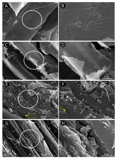 3.1. Scanning Electron Microscopy Suggests the Role of the Consortium in the Deconstruction of Lignocellulose Biomass