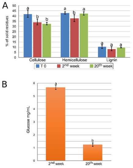 - Ventorino, V.; Aliberti, A.; Faraco, V.; Robertiello, A.; Giacobbe, S.; Ercolini, D.; Amore, A.; Fagnano, M.; Pepe, O. Exploring the microbiota dynamics related to vegetable biomasses degradation and study of lignocellulose-degrading bacteria for industrial biotechnological application. Sci. Rep. 2015, 5, 8161. [Google Scholar] [CrossRef]