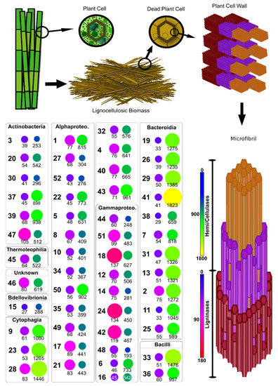 - Bayer, E.A.; Shoham, Y.; Lamed, R. Lignocellulose-Decomposing Bacteria and Their Enzyme Systems. In The Prokaryotes; Rosenberg, E., DeLong, E.F., Lory, S., Stackebrandt, E., Thompson, F., Eds.; Springer: Berlin/Heidelberg, Germany, 2013; pp. 215–266. ISBN 978-3-642-30140-7. [Google Scholar]