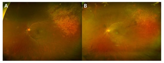 Cytomegalovirus (CMV) is a ubiquitous herpes family virus with a prevalence of approximately 50% in the latent form in the general population [,]. CMV retinitis is one of the most common opportunistic ocular infection in immunocompromised patients [,]. After the advent of antiretroviral therapy (ART), the incidence of CMV retinitis in patients infected with human immunodeficiency virus (HIV) declined and their visual outcomes improved []. On the other hand, the incidence of CMV retinitis has been increasing in the past 15 years in non-HIV patients with diseases such as hematopoietic malignancy, solid organ transplantation, or autoimmune diseases [,,,,].