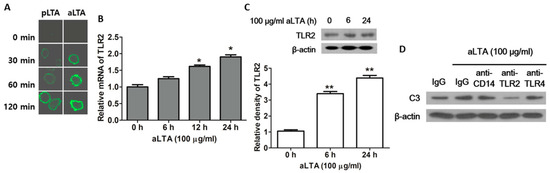 3.2. Toll-Like Recptor (TLR) 2 Is Involved in aLTA-Mediated C3 Expression