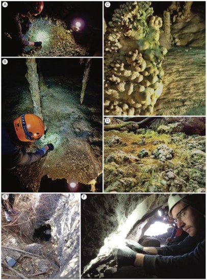 - Gabriel, C.R.; Northup, D.E. Microbial Ecology: Caves as an Extreme Habitat. In Cave Microbiomes: A Novel Resource for Drug Discovery; Cheeptham, N., Ed.; Springer: New York, NY, USA, 2013; pp. 85–108. [Google Scholar]