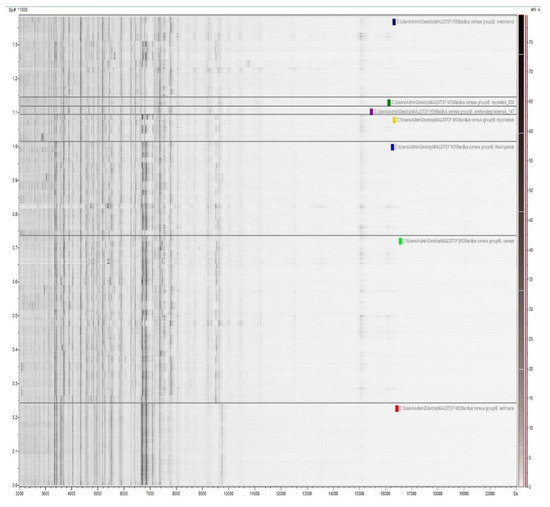 Mass spectra obtained from each single tested species were compared to each other and for each species a main spectrum (MSP) was created and included in an in-house reference library.