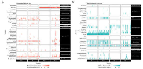 4.2. Wolbachia Changes the Composition of the Bacterial Communities