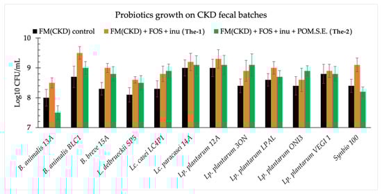 Therefore, probiotics growth was assessed in fecal media prepared starting from pooled feces from patients with chronic kidney disease (CKD). The experimental treatments, in which probiotics were singly added, were: