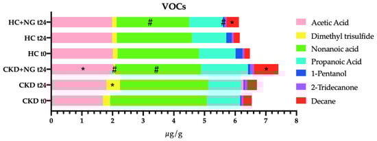 - Dixon, E.; Clubb, C.; Pittman, S.; Ammann, L.; Rasheed, Z.; Kazmi, N.; Keshavarzian, A.; Pat Gillevet, P.; Huzefa Rangwala, H.; Couch, R.D. Solid-phase microextraction and the human fecal VOC metabolome. PLoS ONE 2011, 6, e18471. [Google Scholar] [CrossRef] [PubMed][Green Version]