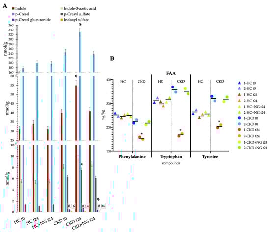 - Guida, B.; Germanò, R.; Trio, R.; Russo, D.; Memoli, B.; Grumetto, L.; Barbati, F.; Cataldi, M. Effect of short-term synbiotic treatment on plasma p-cresol levels in patients with chronic renal failure: A randomized clinical trial. Nutr. Metab. Cardiovasc. Dis. 2014, 24, 1043–1049. [Google Scholar] [CrossRef]