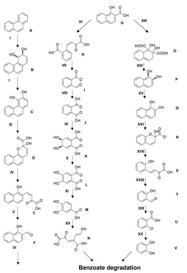 6. Mallick, S.; Chakraborty, J.; Dutta, T.K. Role of oxygenases in guiding diverse metabolic pathways in the bacterial degradation of low-molecular-weight polycyclic aromatic hydrocarbons: A review. Crit. Rev. Microbiol. 2010, 37, 64–90. [Google Scholar] [CrossRef] [PubMed]