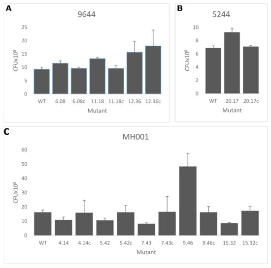 3.5. Identification of Disrupted Genes in Selected Transposon Mutants
