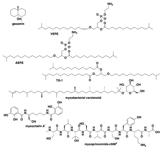 - Lorenzen, W.; Bozhuyuk, K.A.; Cortina, N.S.; Bode, H.B. A comprehensive insight into the lipid composition of Myxococcus xanthus by UPLC-ESI-MS. J. Lipid Res. 2014, 55, 2620–2633. [Google Scholar] [CrossRef] [Green Version]
