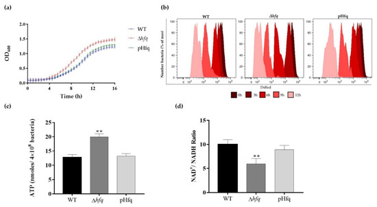 3.1. Hfq Deletion Results in Bacteria with Faster Growth and More Active Metabolism