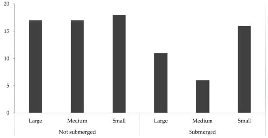 Reintroduction plan showing samples (2-3 seedlings/sample) of different size seedlings (small, medium, and large) of Dactylorhiza incarnata subsp. ochroleuca planted in the wild site. Seedlings were either submerged or not submerged at the time of planting.