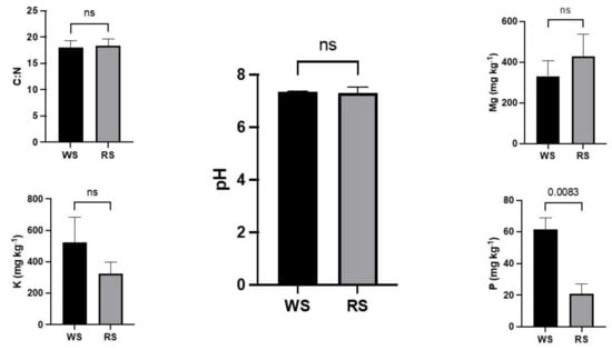 RS had populations of yellow early marsh-orchid in the past. There was no significant difference between pH values of soil at WS and RS (Figure 4). The WS soil had nearly three times high average P content compared to RS (p = 0.0083). On the other hand, C:N ratio, K and Mg content in the soil at the WS and RS were not significantly different.
