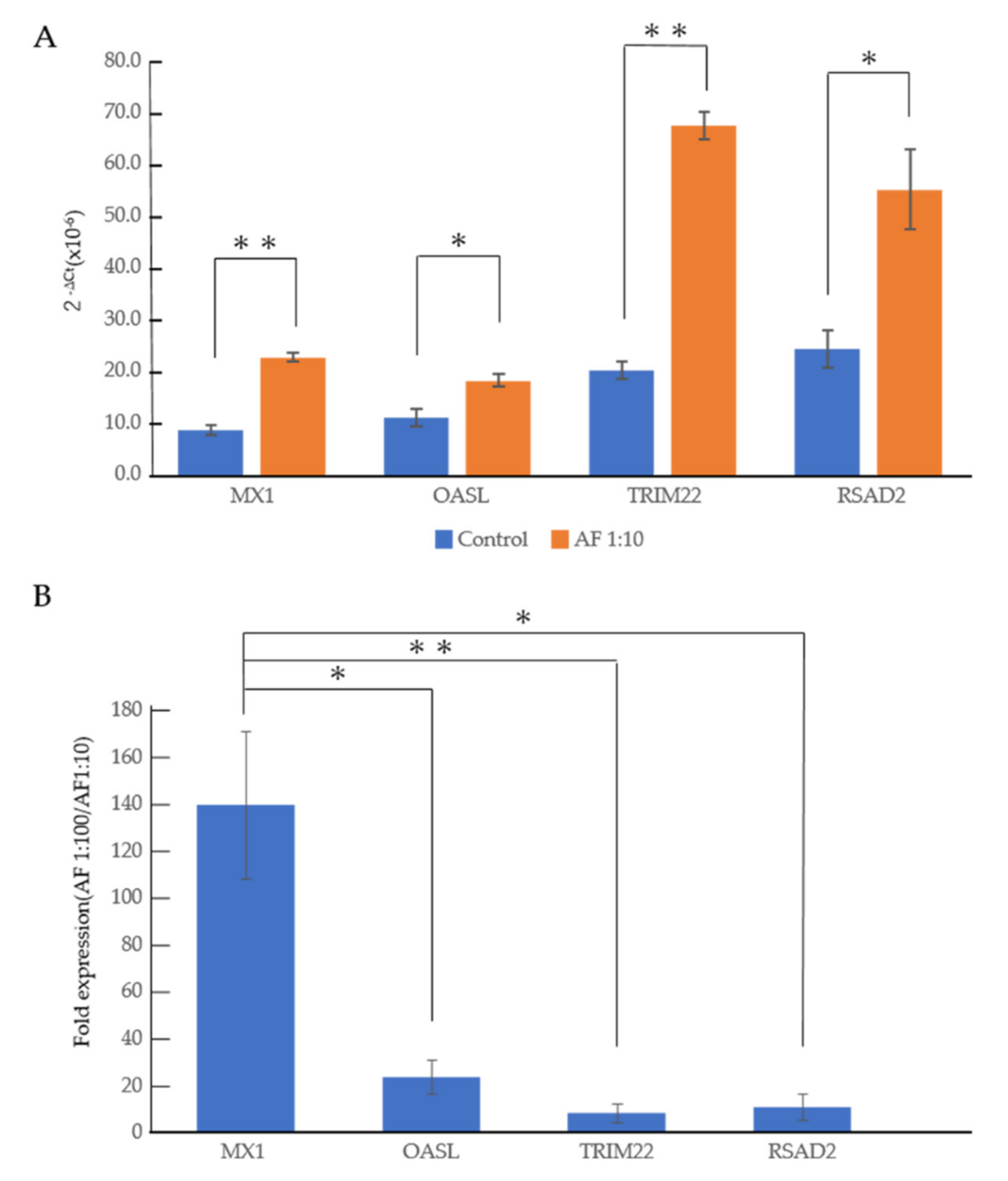 - Jiao, P.; Fan, W.; Cao, Y.; Zhang, H.; Tian, L.; Sun, L.; Luo, T.; Liu, W.; Li, J. Robust induction of interferon and interferon-stimulated gene expression by influenza B/Yamagata lineage virus infection of A549 cells. PLoS ONE 2020, 15, e0231039. [Google Scholar] [CrossRef]
