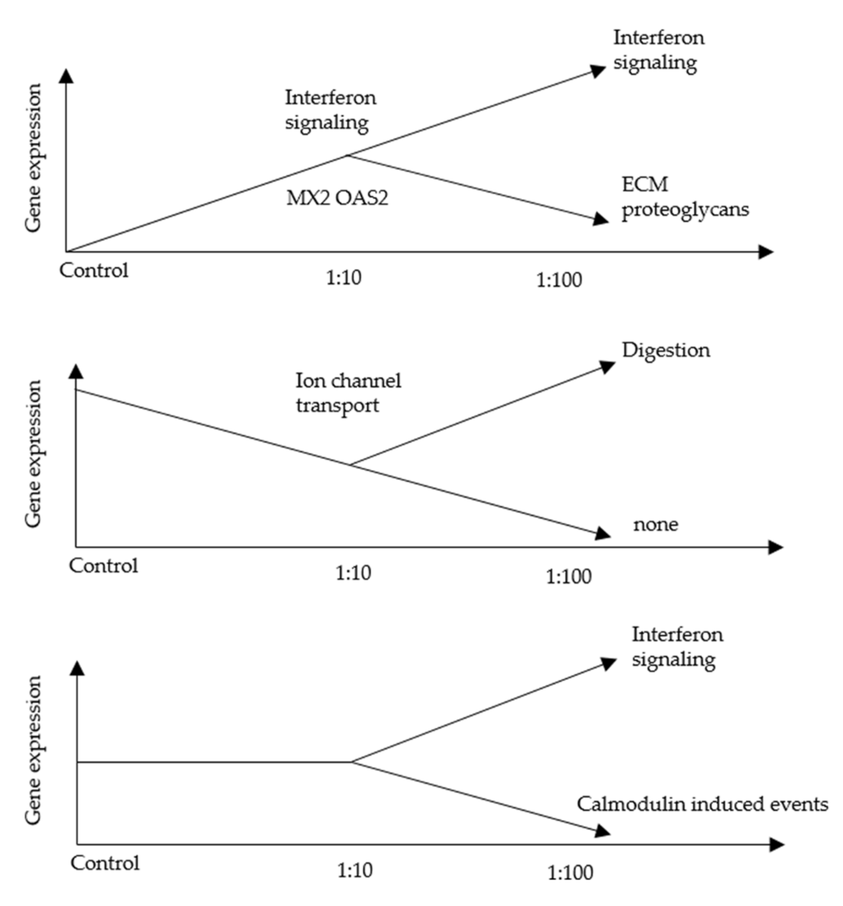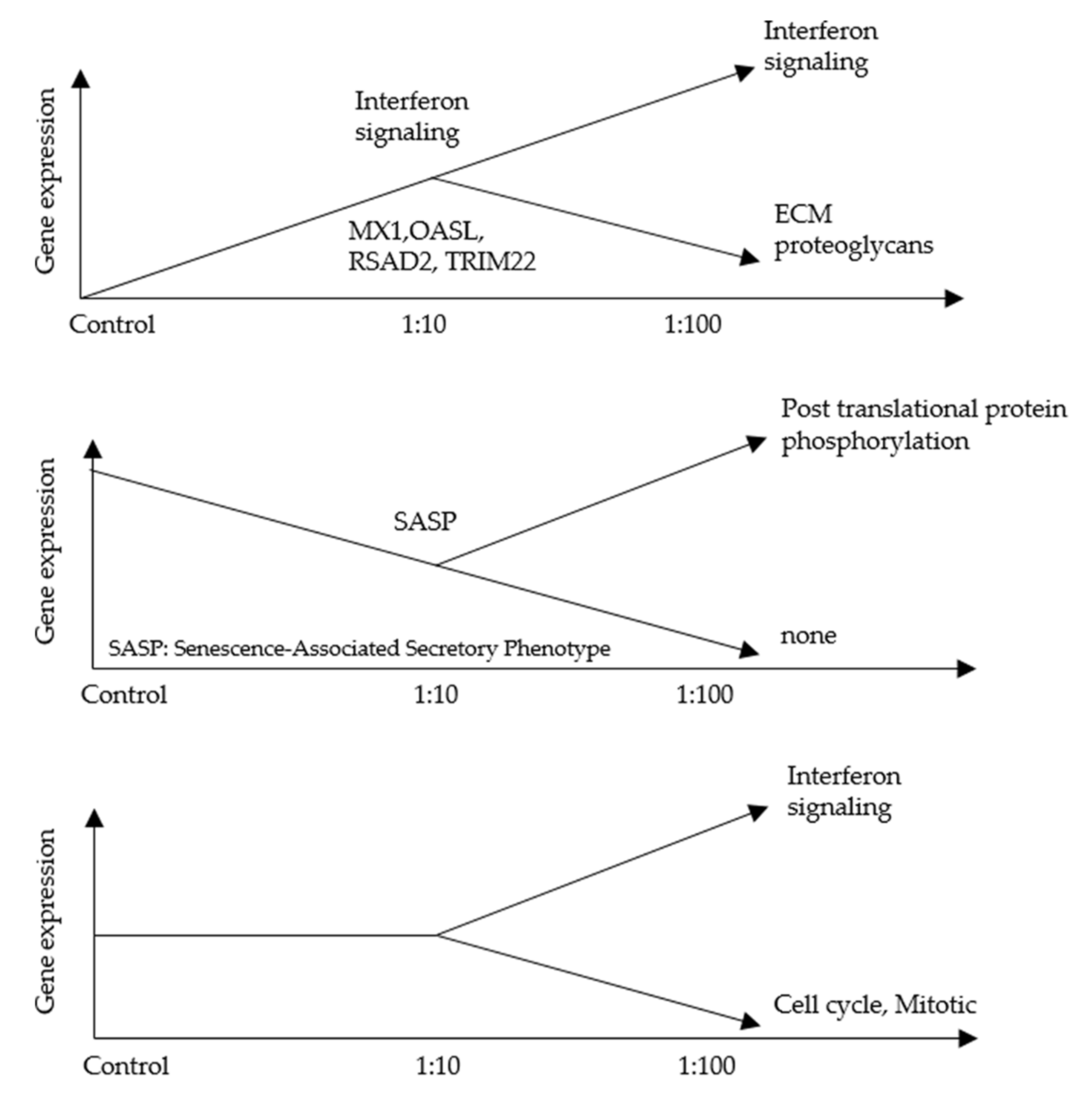 | Gene Symbol | 1:10/Control | p-Value | 1:100/Control | p-Value | 1:100/1:10 | p-Value |