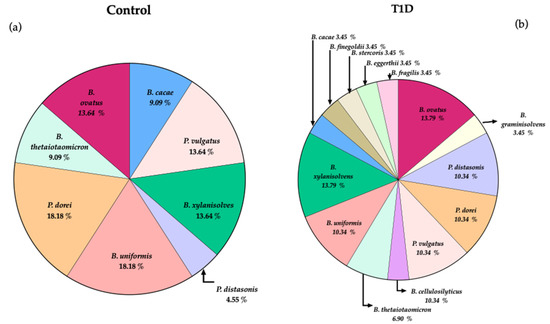 Bacteroides species recovered in culture from (a) control and (b) T1D fecal samples.