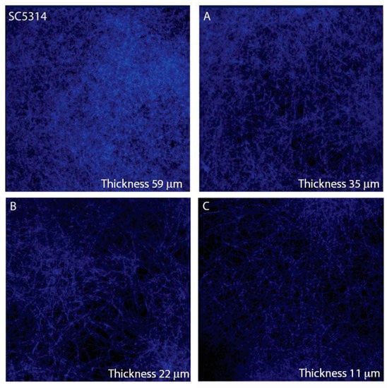 - Sherry, L.; Rajendran, R.; Lappin, D.F.; Borghi, E.; Perdoni, F.; Falleni, M.; Tosi, D.; Smith, K.; Williams, C.; Jones, B.; et al. Biofilms Formed by Candida Albicans Bloodstream Isolates Display Phenotypic and Transcriptional Heterogeneity That Are Associated with Resistance and Pathogenicity. BMC Microbiol. 2014, 14, 182. [Google Scholar] [CrossRef] [PubMed] [Green Version]