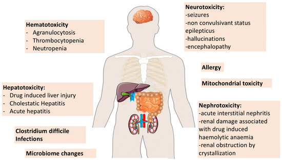 Beta-lactams are widely used as a first-line therapy because they provide broad-spectrum coverage of different pathogens and display bactericidal properties and few drug-related complications. Beta-lactams are commonly considered safe drugs but adverse effects are classically reported [1,2]. Although these antimicrobials are essential in order to treat severe infections, their overuse and unnecessary prolonged administration may become harmful via different mechanisms, including mitochondrial toxicity, adverse drug reactions and the selection of resistant organisms, as well as disruption of the microbiome.