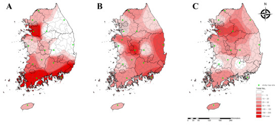 - Lee, W.G.; Yang, S.C. Introduction of regional center for vector surveillance against climate change. Korea KDCA Public Health Wkly. Rep. 2014, 7, 936–938. [Google Scholar]