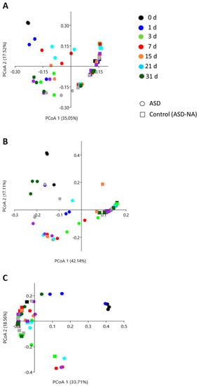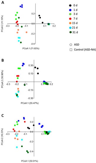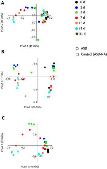 APA StyleHewavitharana, S. S., Klarer, E., Muramoto, J., Shennan, C., & Mazzola, M. (2021). Analysis of Environmental Variables and Carbon Input on Soil Microbiome, Metabolome and Disease Control Efficacy in Strawberry Attributable to Anaerobic Soil Disinfestation. Microorganisms, 9(8), 1638. https://doi.org/10.3390/microorganisms9081638