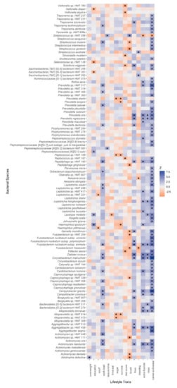 3.3. Lifestyle Associations with Single Bacterial Species or Phylotypes