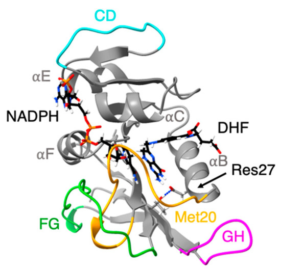 - Schnell, J.R.; Dyson, H.J.; Wright, P. Structure, Dynamics, and Catalytic Function of Dihydrofolate Reductase. Annu. Rev. Biophys. Biomol. Struct. 2004, 33, 119–140. [Google Scholar] [CrossRef] [Green Version]
