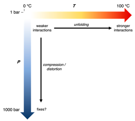 - Gross, M.; Jaenicke, R. Review: Proteins under pressure: The influence of high hydrostatic pressure on structure, function and assembly of proteins and protein complexes. Eur. J. Biochem. 1994, 221, 617–630. [Google Scholar] [CrossRef] [PubMed]