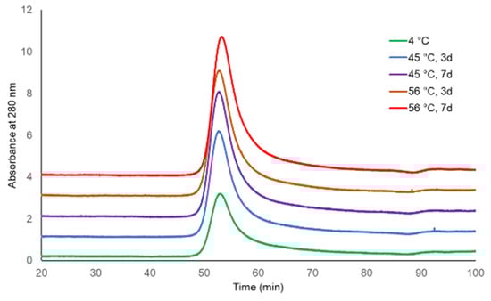 HPLC-SEC chromatograms of Typbar TCV single-dose stability samples (280 nm trace).