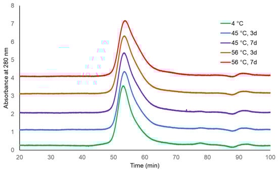 HPLC-SEC chromatograms of Typbar TCV multi-dose stability samples (280 nm trace).