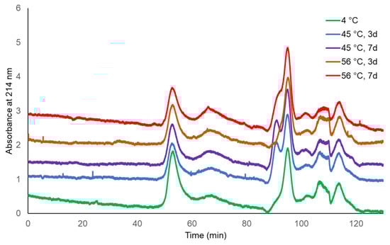 HPLC-SEC chromatograms of Typbar PS vaccine stability samples (214 nm trace).