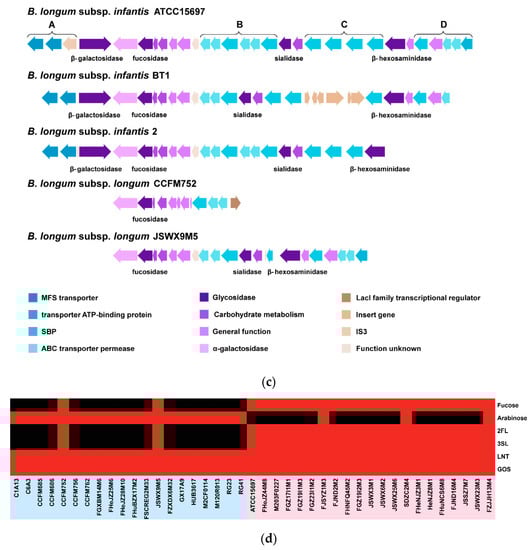 3.5. Carbohydrate Utilization Genotype and Phenotype of B. longum subsp. infantis and B. longum subsp. longum
