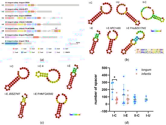 3.7. CRISPR-Cas Systems in B. longum subsp. infantis and B. longum subsp. longum