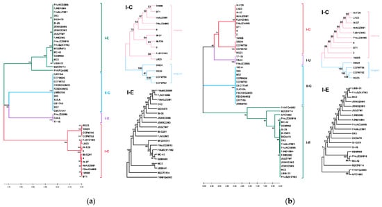 - Kumar, S.; Stecher, G.; Li, M.; Knyaz, C.; Tamura, K. MEGA X: Molecular evolutionary genetics analysis across computing platforms. Mol. Biol. Evol. 2018, 35, 1547–1549. [Google Scholar] [CrossRef]