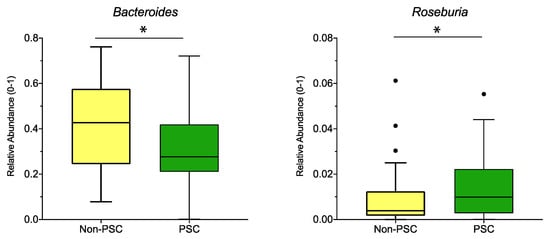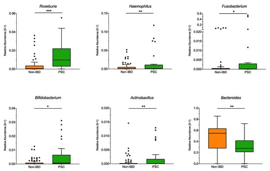 - Sabino, J.; Vieira-Silva, S.; Machiels, K.; Joossens, M.; Falony, G.; Ballet, V.; Ferrante, M.; Van Assche, G.; Van der Merwe, S.; Vermeire, S.; et al. Primary sclerosing cholangitis is characterised by intestinal dysbiosis independent from IBD. Gut 2016, 65, 1681–1689. [Google Scholar] [CrossRef] [Green Version]