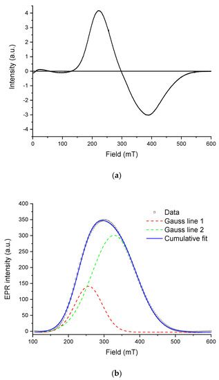 Figure 9 shows the EPR spectrum of the isolated magnetosomes (a) and its approximation with two individual bands using the Gaussian function (b).