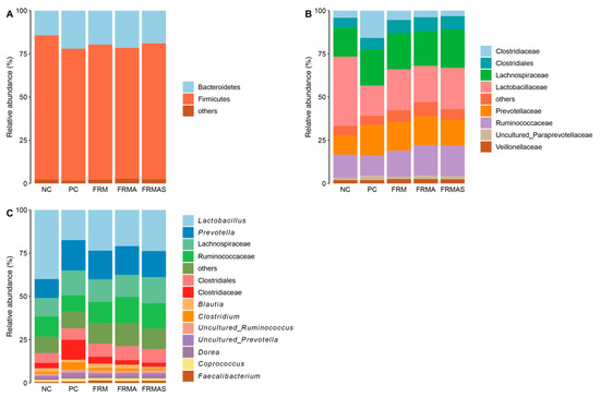 | Alpha Diversity Indices | NC | PC | FRM | FRMA | FRMAS | p |