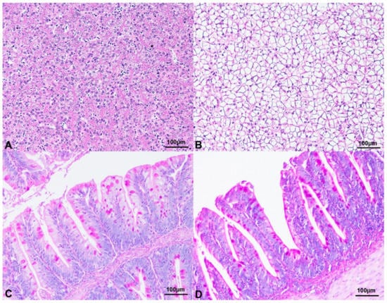 - Rašković, B.S.; Stanković, M.B.; Marković, Z.Z.; Poleksić, V.D. Histological methods in the assessment of different feed effects on liver and intestine of fish. J. Agric. Sci. 2011, 56, 87–100. [Google Scholar] [CrossRef]