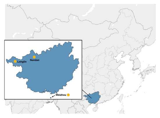 The formation of modern Chinese cattle breeds is the result of multiple and successive invasions throughout history. Based on the morphological and genetic evidence, Chinese cattle have been mainly classified into two types: Bos taurus (taurine) and Bos indicus (indicine) [,,]. Bos taurus originated in Near East, and then spread into East Asia and thought to have reached China at least ~3900 years before present (YBP) []. Previous studies indicated that Bos indicus originated from Indus Valley about 80000 YBP, and spread eastwards to Southeast Asia and southern China <4000 YBP [,]. A recent study has shown that southern China might be another domestication center for indicine cattle []. Indicine cattle were found to be dominant in southern China [,,]. Guangxi Province represents the southernmost region in China where cattle farming has been traditionally practiced. There are three prominent cattle breeds in Guangxi Province: Nandan, Longlin, and Weizhou cattle. Nandan and Longlin cattle inhabit the northwest of Guangxi, while Weizhou cattle were introduced to Weizhou Island from the Leizhou Peninsula more than 100 years ago []. Leizhou Peninsula was considered to be the harbor of the pure Chinese indicine cattle [].