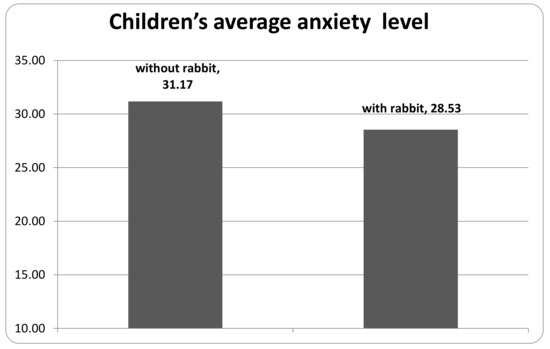 Children’s average anxiety level in the rabbit-assisted vs. the non-assisted periods.